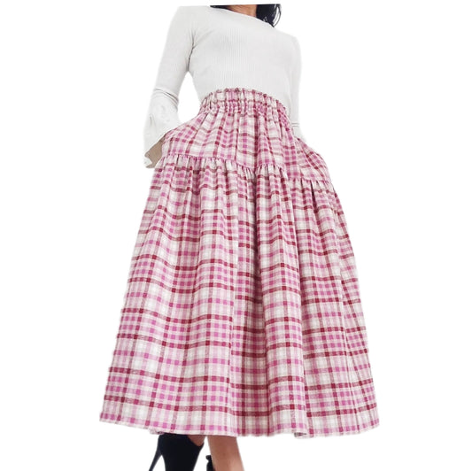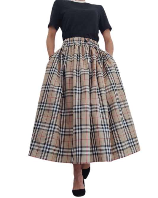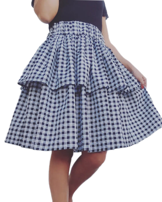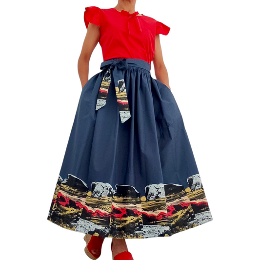 Saia estampada com paisagem abstratas nas barras – um toque artístico e cheio de estilo