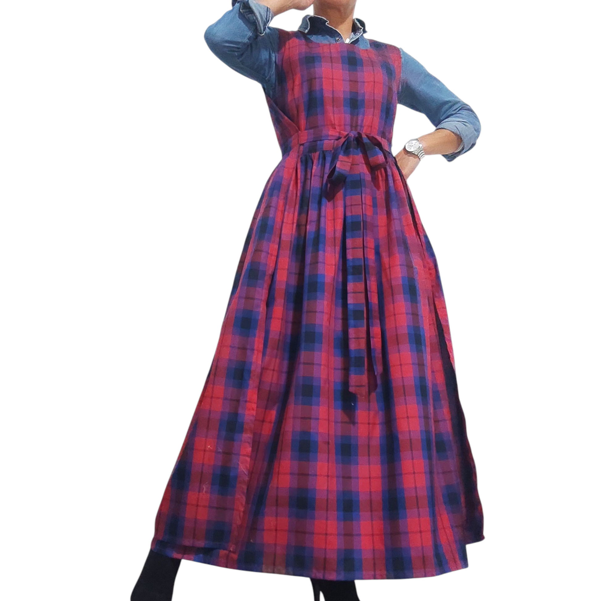 Vestido longo xadrez com aberturas laterais e faixas para dar laço. Modelagem ampla, confortável e versátil. Pode ser usado acinturado ou soltinho. Perfeito para compor looks com camisas, camisolas ou blusas por baixo.